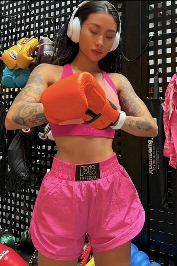 #25 躍彩撞色兩件式運動短褲【孔雀藍M~L】